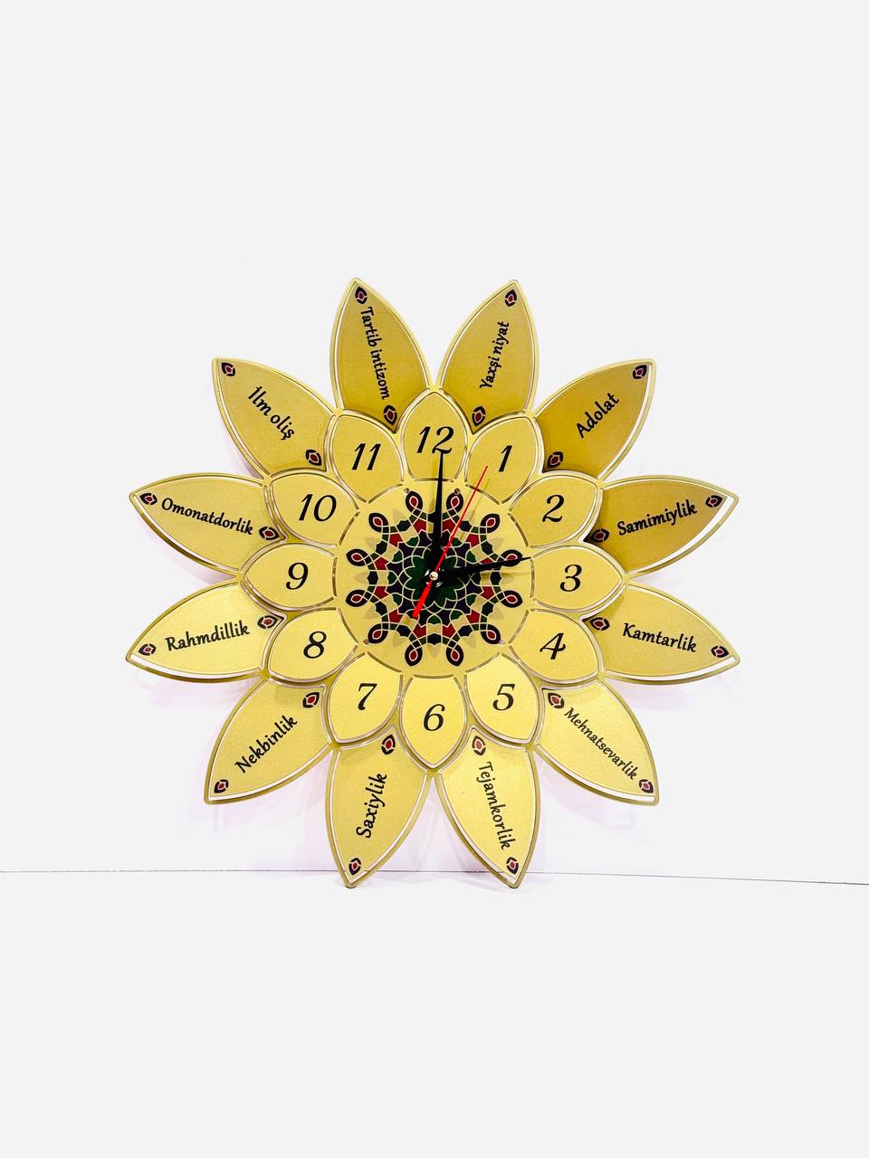 Gul shakli: soat yuzi 12 bargdan iborat chiroyli gulga o’xshaydi, har bir gulbarg fazilatlardan birini ifodalaydi.